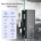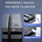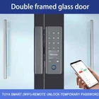 About installation Both forward and reverse can be installed. If you can't judge, please contact customer service, because the sticky board cannot be used twice Product parameters 1. Color: gray 2. Fingerprint capacity: 100 3. Magnetic card capacity: 250 pieces 4. Password capacity: 250 5. Recognition speed: 0.3S 6. Working voltage: 4.5V-6.8V 7. Low voltage prompt: 4.5V 8. Working temperature: -20°C-60°C 9. Emergency power interface: Type-C interface 10. Panel material: aviation grade magnesium aluminum alloy 11. Fingerprint reader: Swedish FPC semiconductor fingerprint acquisition module 12. Installation environment: glass doors, framed glass doors, wooden doors, copper doors, etc. 13. Remote control recognition distance: 20m 14. Application ①: Tuya Smart (WIFI) 15. Application ②: DA DA LOCK (Bluetooth) 16. Function: application + fingerprint + magnetic card + password + key 17. Shopping option ①: Glass door with frame, this option is installed on the glass door with metal frame, so there is no sticky board, and it needs to be drilled for installation. Shopping option ②: standard pure glass door, this option is installed on the pure glass door, with adhesive plate, can be installed directly without drilling, but it is only limited to the pure glass door. Shopping option ③: single-sided glass door, this option is installed in half glass door, half wall environment, without auxiliary lock body, the auxiliary lock body is replaced with the magnetic strip in the picture, and the magnetic strip also needs to be drilled. 18. Installation door thickness: 8mm-13mm TUYA Smart Program Work via WIFI (no gateway required), remote unlocking (touch the doorbell), temporary password (customizable time limit), information recording, door opening reminder DADA LOCK Work through Bluetooth, remote unlocking in Bluetooth range (without triggering), user management (add and delete user information), temporary password (customizable time limit), read operation records, authorize others to manage, set automatic lock time, set normally open mode , support Bluetooth attendance, APP can directly retrieve user attendance records Five major mechanical processes Installation Environment You can choose forward or reverse installation, switch at will, please pay attention to the difference in the installation environment when choosing the purchase item, because different installation environments have different accessories, if you choose the wrong installation environment, you will not be able to install Emergency measures Emergency mechanical key + emergency USB interface power supply, no need to worry about emergencies Product Size list of items Front panel*1 Auxiliary lock body * 1 (single-sided glass door without auxiliary lock body, it becomes a magnetic strip) Adhesive board*2 (the framed glass door is not equipped with adhesive board) Accessory bag*1 Magnetic card*2 key*2 English manual*1 Remote control*1 If you need more magnetic cards, please indicate the number of magnetic cards in the order, free gift (no more than 10) real shot About Logistics