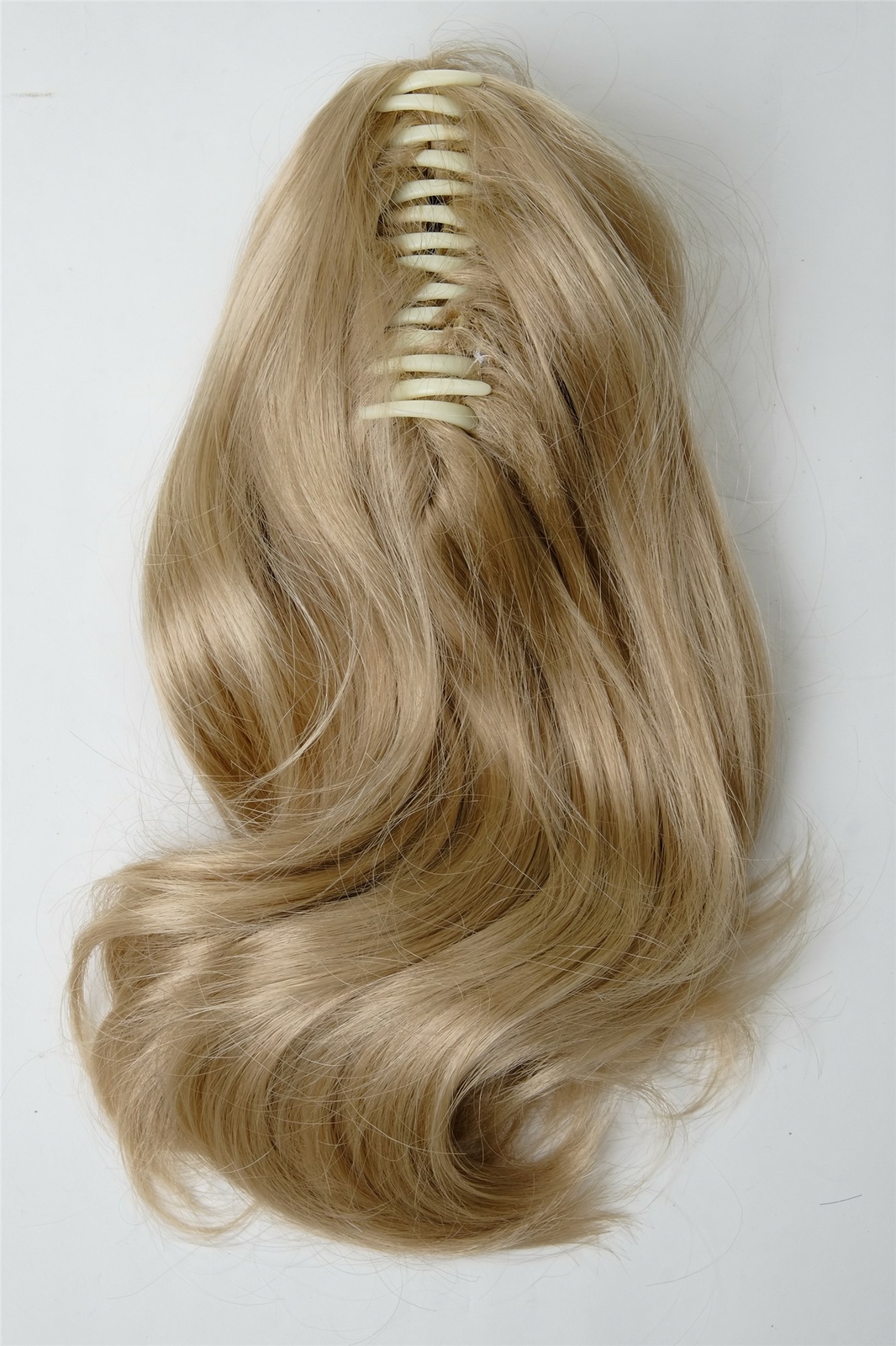 Hair Piece Ponytail Extension Hooked Comb Light Short Wavy Blonde Gold-Blonde