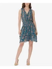 $ 4.2THREE DOTS Womens Navy Flutter Sleeve Square Neck Short Fit + Flare Dress L