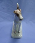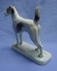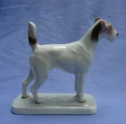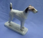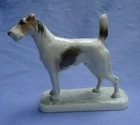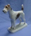 WIRE HAIR FOX TERRIER ROSENTHAL GERMANY DOG FIGURINE 1930s...detail shows deep inset soulful eyes, furry eye brows, nose w nostrils, mouth, great floppy ears, male parts.........defined fur with hand painted tri color accents...high quality porcelain dog designed by F DILLER...5"tall 5"long...no chips,cracks,crazing,....clear clean old mark...check out my other 48 FOX TERRIERS(last photo)..copyright Morning Line ...when making an offer please keep in mind ebay charges me 20% on the total order including shipping.......