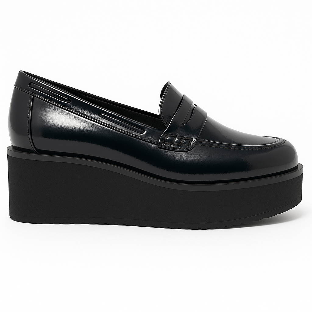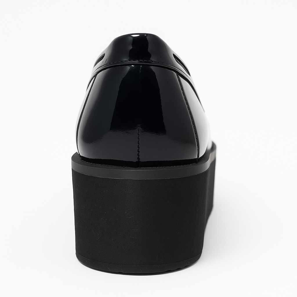 Step into effortless style with these Women's Penny Loafers, featuring a chunky platform sole that adds a touch of Gothic flair to your ensemble. Crafted in a sleek black faux leather, these shoes are a versatile choice for a range of occasions, from business meetings to casual outings or even cocktail parties. The loafers are designed with comfort in mind, boasting motion control and a non-slip outsole to ensure stability. The closed-toe silhouette and synthetic lining keep the shoes lightweight, perfect for wear across seasons from the warmth of summer to the cooler autumn days. Their narrow-slim shoe width ensures a snug fit, making them a smart addition to any wardrobe.