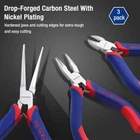 Store New Arrivals Add to Favorite View Feedback Contact WORKPRO Mini Pliers Set, 3-Piece Small Pliers Tool Kit Includes 4” Diagonal Plier, 5” Long Nose Plier, 6” Needle Nose Plier, for Making Crafts, Repairing Electronic Devices Description Item model number W001358A Batteries Required? No Color Blue-red Brand WORKPRO Material Carbon Steel Grip Type Ergonomic Specific Uses For Product Cutting, Pulling, Twisting Item Weight 8.4 ounces Handle Material TPR Batteries Included? No Manufacturer HANGZHOU GREATSTAR INDUSTRIAL CO.,LTD Package Dimensions 6.77 x 6.06 x 0.71 inches Included Components 4" mini diagonal plier, 5" mini long nose plier, 6" mini needle nose plier 3 Pieces Mini Pliers Tool Set: Our professional small pliers set has 3 different sizes for your choice, including a 4-inch mini diagonal plier, 5-inch mini long nose plier, and 6-inch mini needle nose plier. A great pliers tool set well in fixing meticulous chores, crafts making, and repairing electronics projects, also perfect for anyone who enjoys creating a wide range of 3D Metal models High-Quality Materials: Constructed of heat-treated premium drop forged steel for strength and durability which is hardened and tempered for easy cutting. These WORKPRO pliers are covered in slushing oil to prevent getting rusty, please wipe them off before using Self-Opening Spring Design: Each micro plier is equipped with double-leaf springs, which makes these small pliers open automatically to save labor and reduce fatigue. It is easy to work with two or three fingers to carry out precision work in hard-to-reach spaces Ergonomic Comfort Grip: The mechanical mini pliers feature bi-material TPR handles with ergonomic grip for an excellent comfort experience, helping prevent hand fatigue and ensuring precise control during long-time work. The unique anti-slip design provides extra grip for control to get more efficiency Ideal for Metal Model Kits: WORKPRO 3-piece metal model kit tools come in different sizes and specifications that can cut, strip, bend, and twist iron wires with ease. They're perfect for metal puzzle assembly and can help you build models quickly. They're ideal for both beginners and professionals and make great gifts for DIY model lovers Product Description HIGH LEVERAGE JOINT The surface of mini pliers set was polished and coated with anti-rust oil, provides high durability. And the high leverage design can save strength as much as possible when you work. RESET SPRING DESIGN Each plier is equipped with double spring shrapnel and keeps the pliers open automatically, save labor and easy to work. ERGONOMIC & COMFORTABLE HANDLE Bi-material TPR handles, which are designed to prevent grip fatigue and keep the pliers from slipping out of your hand while you work on your projects. Induction-hardened cutting edge to quickly and efficiently cut wire. Feature a crosshatch teeth patterned steel grip for excellent control while holding or bending. Hardened edge blade for increased ease of cutting. Precision tip (needle-nose) for cutting, holding and bending. Constructed of heat-treated premium drop-forged carbon steel with nickel coating for rust protection. Hardened jaws and cutting edges for extra-tough and easy cutting. 3-piece metal model pliers kit tools, a great gift for DIY model lovers! They're perfect for metal puzzle assembly, and can help you build models quickly, ideal for both beginners and professionals. WORKPRO PLIERS & PLIER RACK Add to Cart Add to Cart Add to Cart Add to Cart Add to Cart Customer Reviews 4.5 out of 5 stars 570 4.3 out of 5 stars 52 4.5 out of 5 stars 16,766 4.6 out of 5 stars 4,351 4.6 out of 5 stars 464 Price $9.99 $ 9 . 99 $17.99 $ 17 . 99 $21.99 $ 21 . 99 $24.99 $ 24 . 99 $9.99 $ 9 . 99 Material Carbon Steel Iron Carbon Steel Chrome Vanadium Steel Carbon steel Handle Material TPR / Plastic TPR Plastic Quantity 3 pcs 2 pcs 7 pcs 4 pcs 3 pcs Color Blue-red Black Blue-red Blue-red Blue, Red, Pink Uasge Home Home Home Home Home ABOUT US We offer the best prices around on high quality products. Our E-store includes media such as books, movies, music and games while offering electronics, toys, sporting apparel, clothing, tools, general home, garden items and more. SHIPPING We are always working hard to ensure your package arrives as soon as possible. Please understand that some factors like weather, high postal traffic, and the performance of shipping companies are outside of our control. We offer free shipping to the lower 48 states and ship within 2 business days of payment, usually sooner. We do not accept P.O. Boxes. Please provide a physical address. RETURNS We offer a 30-Day Return Policy on items which you are not completely satisfied with. You have the option for a full-refund or an exchange of the item. No returns are available on items shipped outside of the USA. PAYMENT We accept PayPal. CONTACT US This page content is yet to come Please ad us to your favorite seller and visit again later Thank You CUSTOMER SATISFACTION We try our very best to make sure every customer is completely satisfied. If there's a problem, message us! We're happy to help.
