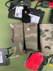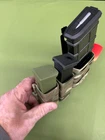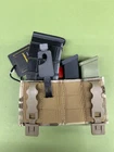 Hello, I have several battle belt magazine pouches for sale. New with retail tags still attached. These are made to hold 1 AR magazine and 2 pistol (Glock 9mm/40 cal) magazines They are one piece unit Please attach note to your purchase on which color/s you want. 2-OD green 2-Multi camo 2- Black (sold) 1-black camo (sold) Any questions let me know. Thanks