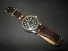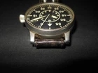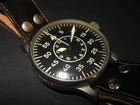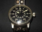 You are bidding on a STUNNING and VERY RARE example of a WW2 German Luftwaffe 1942 "B-Dial" A. Lange & Sohne, "Big Pilot" Beobachtungs-Uhr (Observation Watch), Fl. 23883! This EXACT one is published in Dr. Konrad Knirim's "Military Timepieces" book! At the outbreak of WW2, navigator’s watches were put into full production. The German government contracted five manufacturers to build B-Uhr watches that were both anti-magnetic, and also chronometer certified. Those companies were Lange, IWC, Laco, Stowa, and Wempe. The requirements for this watch were a 55mm diameter casing; Arabic numerals; central second hand with hack capability, a large crowns (onion or diamond shape) to allow for easy adjustments using thick gloves; and a very long double riveted leather strap to allow for fit over thick pilot’s jackets. These watches feature a triangle marker at 12 o’clock position, which was used for the upward orientation of the dial during night flight. In addition, it was also used as a solar compass to find the earth’s true north in conjunction with sextants, compass and data charts. Exact measurements were a case diameter of 55mm; a height of 16.5mm; and a weight of 183g - the result was one of the most imposing wristwatches ever built. B-Uhr was derived from the German word “Beobachtungs-uhr” meaning “Observation Watch”. It is also referred to as the “Navigator’s watch” or “Pilots watch. This A. Lange, Glashutte B-Uhr is in SUPERB functioning condition and is EASILY the nicest I have seen of it's type! Though the strap is a replacement, it is otherwise 100% original in every way! There are some very slight scratches on the plastic crystal due to the age, and some very minor wear throughout, but otherwise near perfect. The dial glows PERFECTLY under UV light! T his EXACT watch is featured on page 347 of his book, titled, "Military Timepieces". All numbers are matching and are as follows: Movement: 213755 Serial Back of Case :213755 Inside of Main Cover:213755 Lange & Sohne The body is finished in a matt gray, and is clearly engraved, Fl. 23883. This exact watch was supplied to the Luftwaffe on July 27, 1942. The gold finished 2/3 plate movement features 16 j ewels, a straight-line lever escapement, cut bimetallic balance, and blued steel breguet balance spring, and hack mechanism. A bit of wear on the reverse, but nothing that detracts. It comes complete with copies of the original paperwork! An AMAZING and 100% ORIGINAL addition to any collection or display!