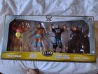 The product is an original WWE Elite Collection Then Now Forever Together 6 Action Figure 4 Pack produced by Mattel. The pack includes four 6in. action figures of Becky Lynch, The Rock, Hulk Hogan, and Steve Austin, along with a belt accessory. The figures are based on the characters' appearances on the WWE TV show "Raw" and are part of the WWE franchise. The pack is exclusive and comes in original, unopened packaging.