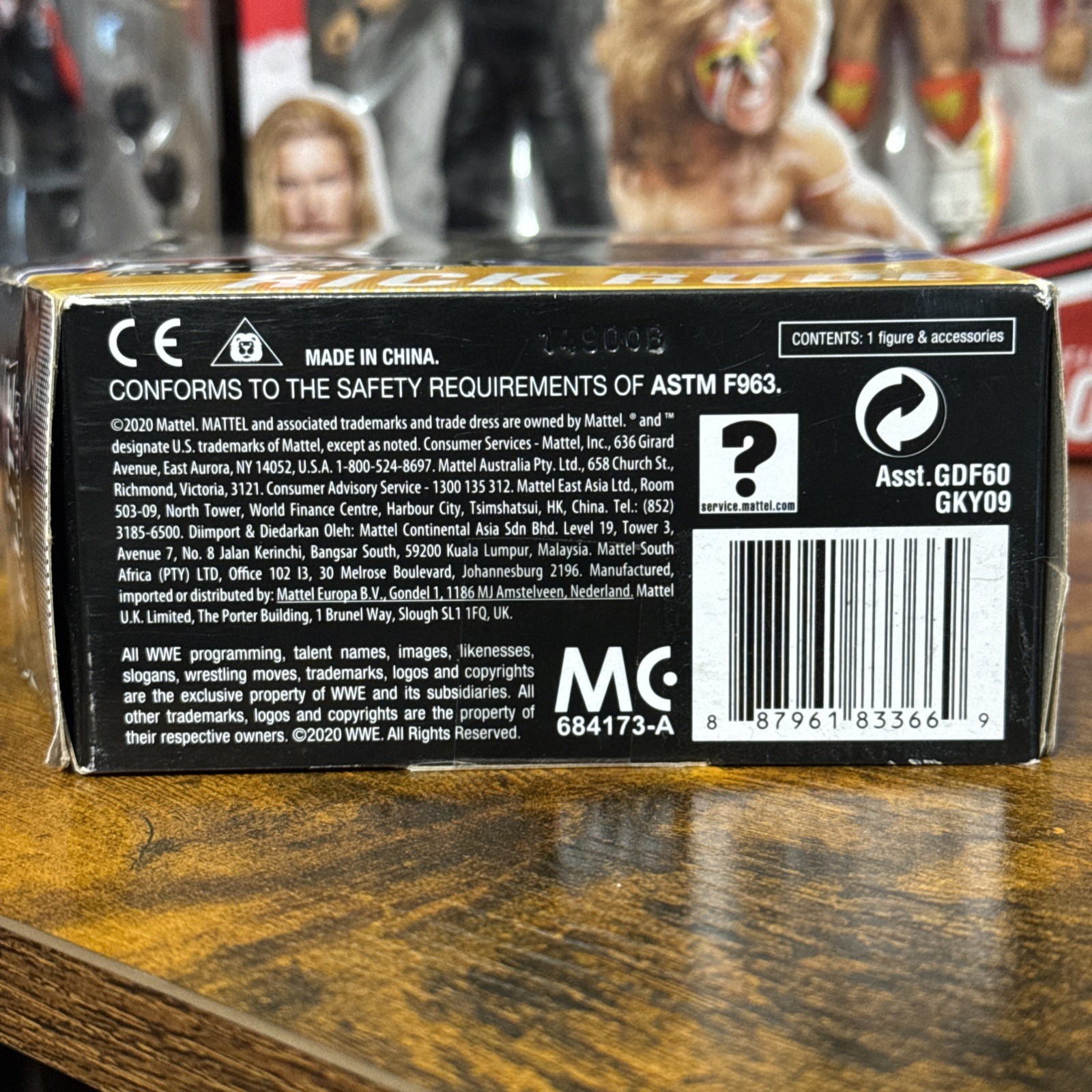The Mattel Rick Rude Action Figure is part of the WWE Elite Collection Series 77, featuring a 1:12 scale plastic model designed for children aged 6-10 years old. This action figure depicts the iconic wrestling character Rick Rude and comes with clothes, making it a great addition to any wrestling fan's collection. Manufactured in 2020, this custom figure captures the essence of Summer Slam events and allows kids to recreate their favorite wrestling moments. The Mattel brand ensures quality and attention to detail, bringing the world of professional wrestling to life through this action figure.