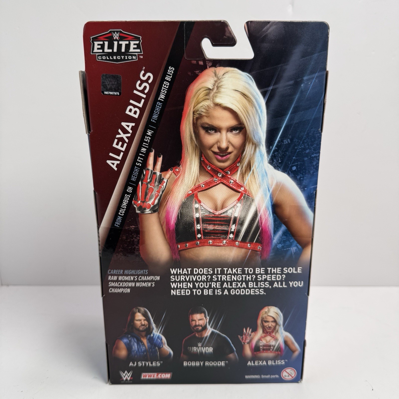WWE Mattel Elite Collection – Survivor Series: Alexa Bliss. Includes the RAW Women’s Championship title and detailed ring gear with pink highlights in her iconic goddess look. Fully articulated collector-grade figure with an accurate likeness of Alexa. A must-have for WWE figure collectors and fans of “Little Miss Bliss”. Comes with official WWE licensed hologram for authenticity. Figure height: approx. 6 in Brand: Mattel ©2018 Contents: 1 figure + accessory (championship) Recommended for ages 8+