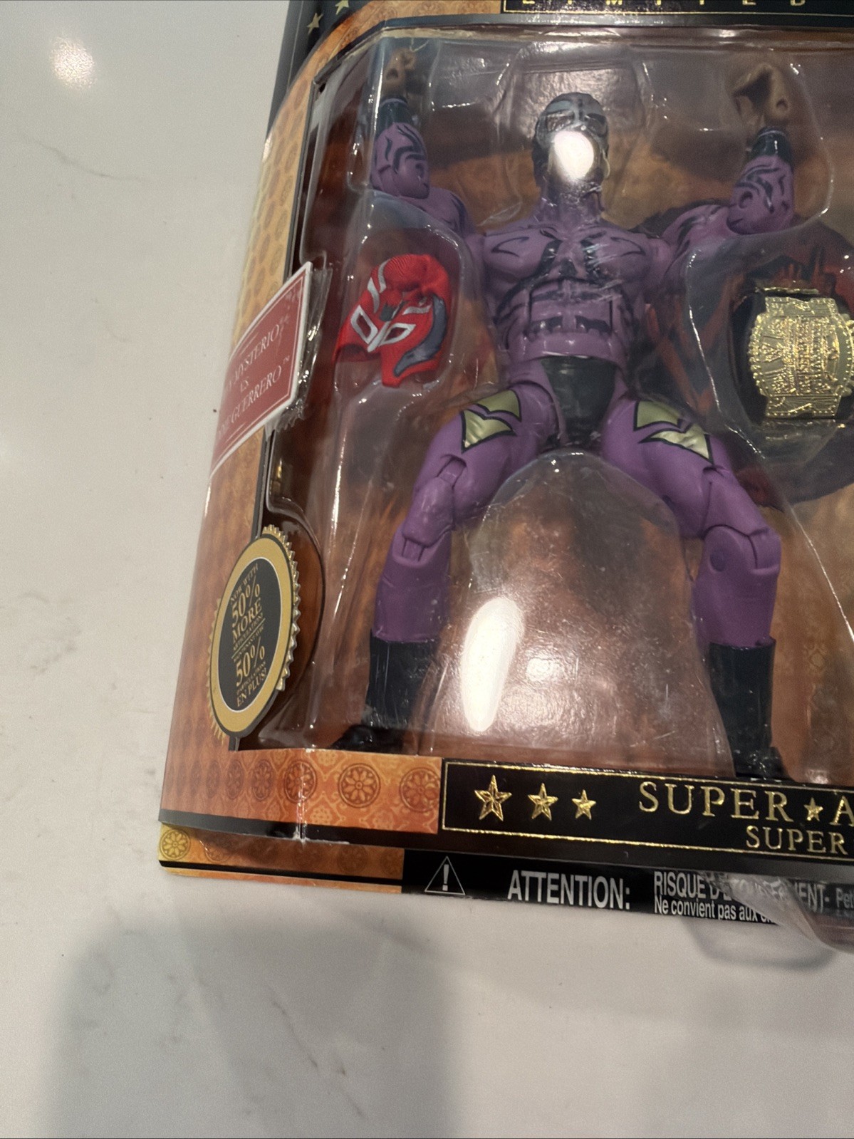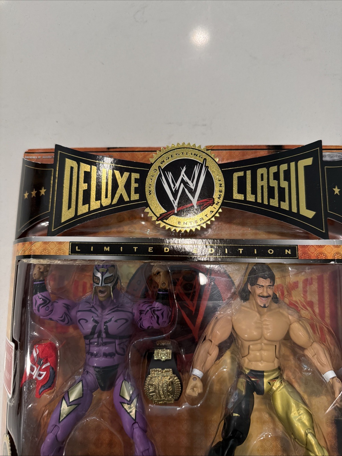 The WWE Jakks Classic Deluxe Rey Mysterio & Eddie Guerrero "Halloween Havoc Figures" are 8-inch action figures made of plastic, manufactured in 2009 by JAKKS Pacific. These figures feature the popular WWE characters Rey Mysterio & Eddie Guerrero, part of the Classic Superstars series. The packaging is original and unopened, making it a desirable collectible for fans of wrestling and the WWE franchise. With detailed design and high-quality construction, these figures are a must-have for any wrestling enthusiast.