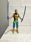 For fans of the WWE and Teenage Mutant Ninja Turtles franchises, this is the perfect action figure set for you! Featuring Cody Rhodes as Casey Jones, Seth Rollins as Leonardo, and Rey Mysterio as Raphael. This WWE Elite Collection set is a Target Exclusive and is made of ABS plastic. The set includes three action figures, each with intricate details and come with multicolor attire as seen in the WWE universe and Nickelodeon Animation Studio.