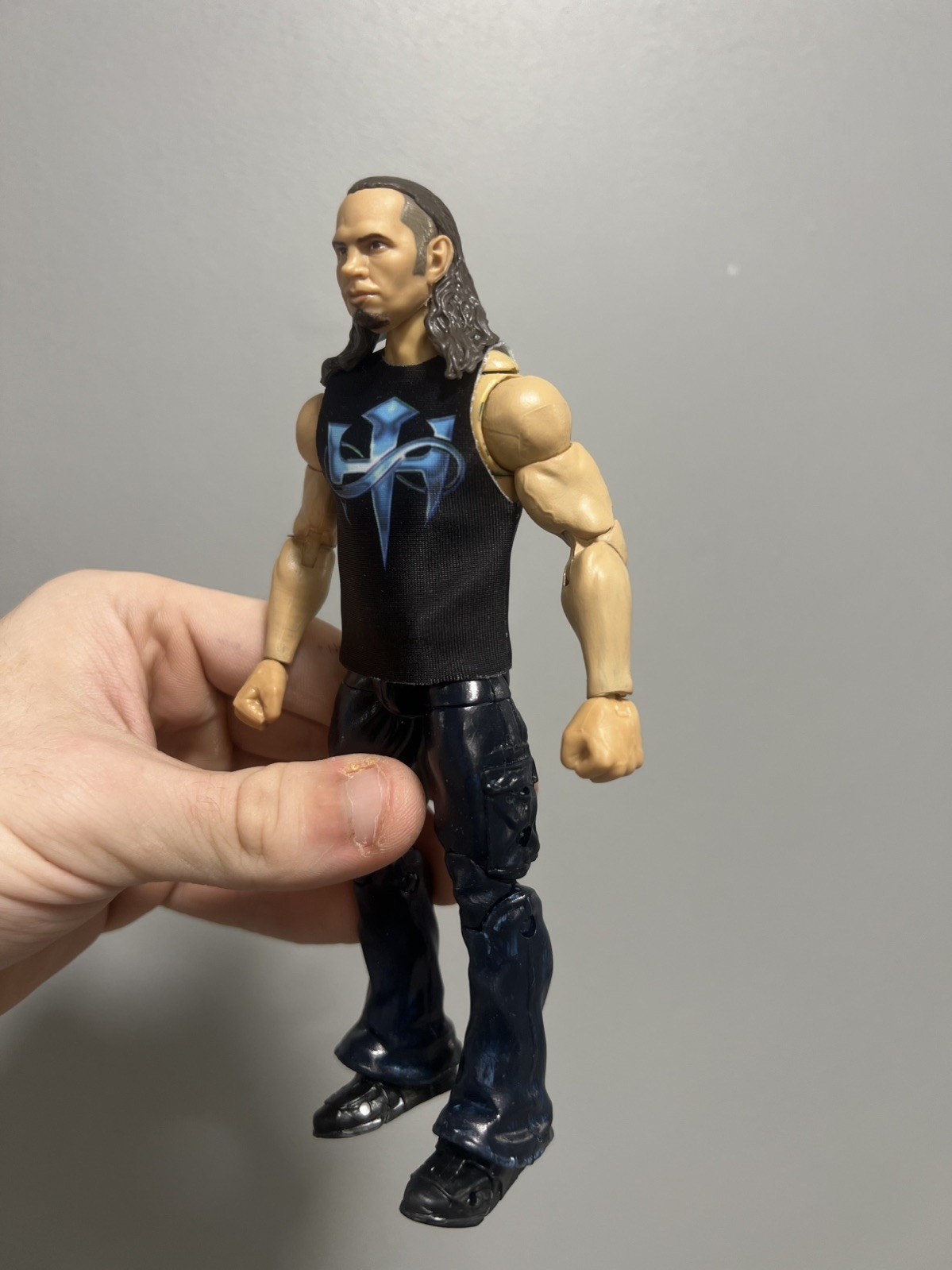 The product is a WWE TNA Mattel Ultimate Collection MATT HARDY CUSTOM DJWF CUSTOMZ action figure of Jeff Hardy. Manufactured in 2019, this 1:12 scale plastic figure stands at 6.5 inches tall. Part of the WWE Elite Collection series, this multicolor figure is a licensed reproduction of the wrestling superstar. Perfect for fans aged 8 and up, this collectible item features the character's iconic look and is a must-have for any wrestling enthusiast's collection. THERE ARE NO REFUNDS ON THIS ITEM