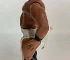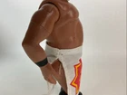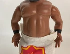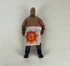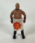 This is a vintage WWE action figure of Rikishi from the Jakks Stunt Action Superstars series 1, manufactured in 2001. The 7-inch figure features Rikishi in his wrestling attire, unboxed and comes with clothes. It is an original item from JAKKS Pacific, representing the WWE franchise. The figure is part of the wrestling theme and is designed in a 1:12 scale, depicting Rikishi in a Jeep vehicle type, suitable for ages 12-16 years.