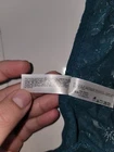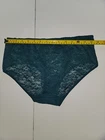 This is a dark teal Wacoal hi-cut brief panty made of stretch lace with floral lace pattern and embroidered scalloped accents. It is a glamorous and elegant underwear piece for women, featuring a high-rise design, high leg cut, and breathable nylon/spandex material. The semi-transparent lace fabric adds a romantic and classic touch to this stylish lingerie.