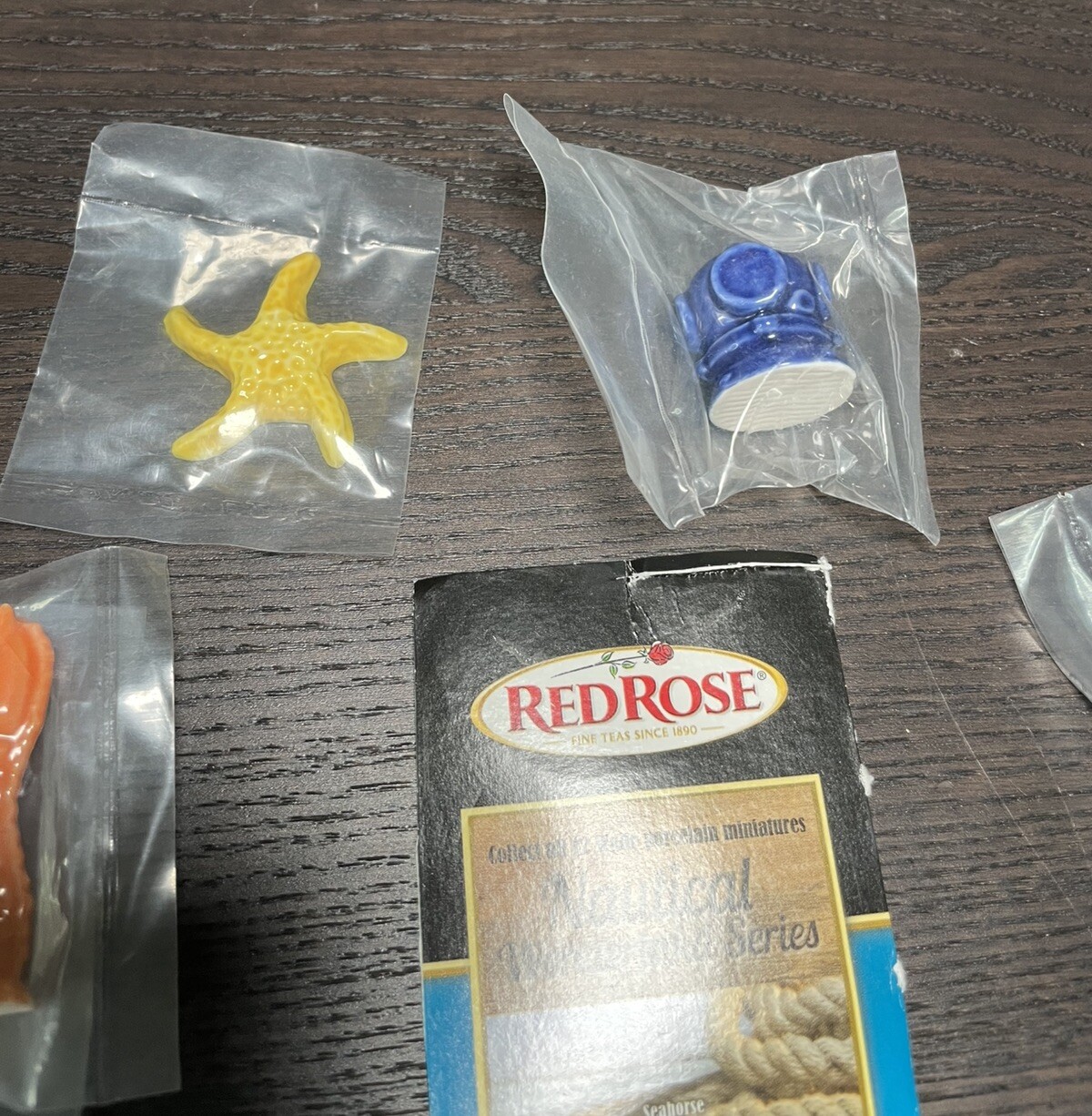 These Wade Red Rose Tea Nautical Wonderland Series lot of 9 include Helmet Seahorse Sailboat Compass wheel lighthouse seagull treasure chest starfish. New and sealed.