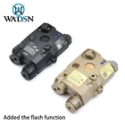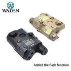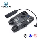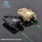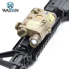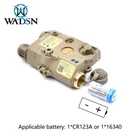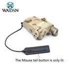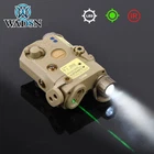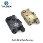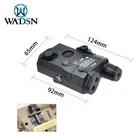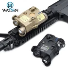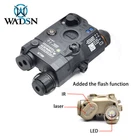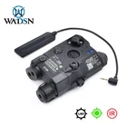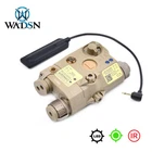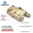 WADSN LA-5C UHP PEQ15 IR Laser Green Blue Red Dot Tactical Weapons for 20mm Rail White LED Flashlight Hunting Airsoft Product material: PA66 fiber-reinforced nylon plastic Color: BK/DE Adaptation: 20mm Picatinny, Nut Knob Assembly Function: Lighting and laser pointer for Airsoft Function: single visible laser/visible laser strobe/visible laser + white light/white light on/white light always on/white light strobe 1. Red laser/red laser strobe/IR laser + white light/white light constant on/white light strobe 2. Green laser/green laser strobe/IR laser+white light/white light constant on/white light strobe 3. Blue laser/blue laser strobe/IR laser+white light/white light constant on/white light strobe Net weight: 126g Lamp diameter: Ф22.9 Diameter of light outlet: Ф13 Switch type: mode gear + key switch + mouse tail switch LED battery life: 42min Laser battery life: red light 55H Lumen: 110 (CR123)/140 rechargeable battery Use battery: CR123*1/16340*1(NO include) Voltage range: red light 1.5-4.2V/LED: 3.9V Peak light intensity: 2500cd Maximum current: 4.2ma Socket Size: 2.5mm plug Remote control : Only Momentary-On function Body button Switch :Only Contstant-On function This item support zero target adjust