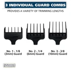 Bump Free Trimming – Our finely ground Diamond finished T Blades are bump free, durable, and stay sharp longer than traditional stamped blades Multipurpose – This trimmer enables you to do more than just trim your beard, you can detail, fade, and outline with this versatile beard trimmer High Quality Components – Corded power allows for extreme strength heavy duty cutting from our high power trimmer motor 3 Individual Beard Guards – This 7 piece trimmer kit features 3 individual beard guards from 1/8”, 1/4”, to 3/8”, a beard comb, and English and Spanish instructions The Brand Used by Professionals - Wahl clippers and trimmers have been used by professionals in the salon & barber industry since 1919; Featuring self-sharpening precision blades & quality construction The Wahl T-Pro Bump-Free hair trimmer for men designed to provide a seamless trimming experience. Equipped with finely ground diamond-finished T-blades, this beard trimmer for men ensures a bump-free beard-trimming session. The blades are crafted to stay sharp for extended periods, surpassing the longevity of traditional stamped blades. Inside this trimmer lies a high-quality combination of components, allowing for heavy-duty cutting and trimming. Its high-power trimmer motor ensures exceptional performance, enabling you to tackle even the toughest hair and beard grooming tasks. This mens hair trimmer goes beyond simple beard trimming. It empowers you to achieve precise detail trimming, and clipping, as well as effortless hair outlining, and detailing. With its versatility, you can style and maintain your facial hair and hairstyle. The 7-piece facial hair trimmer kit showcases a sleek red and black design. It includes three individual beard guards that vary in length, offering options of 1/8", 1/4", and 3/8" trims. The kit also features a convenient beard comb for grooming and styling, along with comprehensive instructions provided in both English and Spanish. The compact size of this trimmer allows it to be easily maneuvered, but also contains the power of a full size trimmer. This corded unit provides a constant stream of power and contains a USA plug. The Wahl uses a very powerful motor that delivers nearly 10,000 cycles per minute to the cutter head. This results in a very strong audible hum, but is completely normal to its operation. Don’t settle for a weak trimmer! Please note that each mens beard trimmer kit undergoes thorough testing for cutting performance prior to packaging, utilizing a hygienic fiber. While our utmost efforts are made to clean the product and remove any testing particles, there is a slight possibility that a few may remain. These particles are not hair and can be effortlessly wiped off, ensuring a hygienic and comfortable grooming experience. If you happen to get your blade wet make sure to dry it off completely and use Wahl Blade Oil to oil the blades. Upgrade your grooming routine with a Wahl Beard Trimmer for men. Experience precision, versatility, and durability in one sleek package.