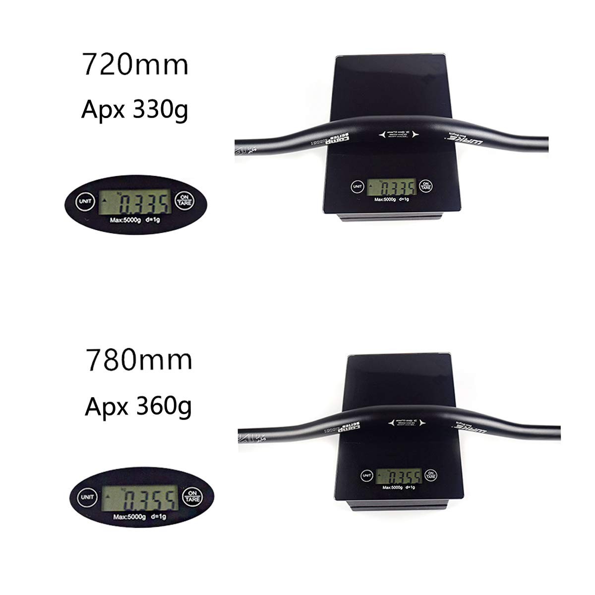 Specifications: Material: aluminum alloy. Color: Black/Red/Blue/Yellow. Diameter of clamp area: 31.8mm / 1.25 inch. Diameter of the bar ends: 22.2mm standard bar ends. Length of Riser bar: 720mm-28.3 inch / 780mm-30.7 inch Weight of Riser bar: 330g / 360g Features: Riding Comfortable: Bicycle Handlebar made of high quality aluminum alloy, Ergonomic curve supports rider's back. Provide protection during cycling. High Quality: Aluminium Alloy Mountain Bike Riser Handlebar, Numerical controlled precision bending. Hard Anodizing. Easy to Install and Disassemble: Complete set, ready to be installed and used right away. Wide Range of Applications: Handlebar Can be used for MTB, road bikes, long-distance mountain travel bikes, etc. Best choice for your loving bike, with MTB, Road bike, Long-distance mountain travel bikes, Package includes: 1 x Wake Handlebar (kind note: the grips and stem not included)