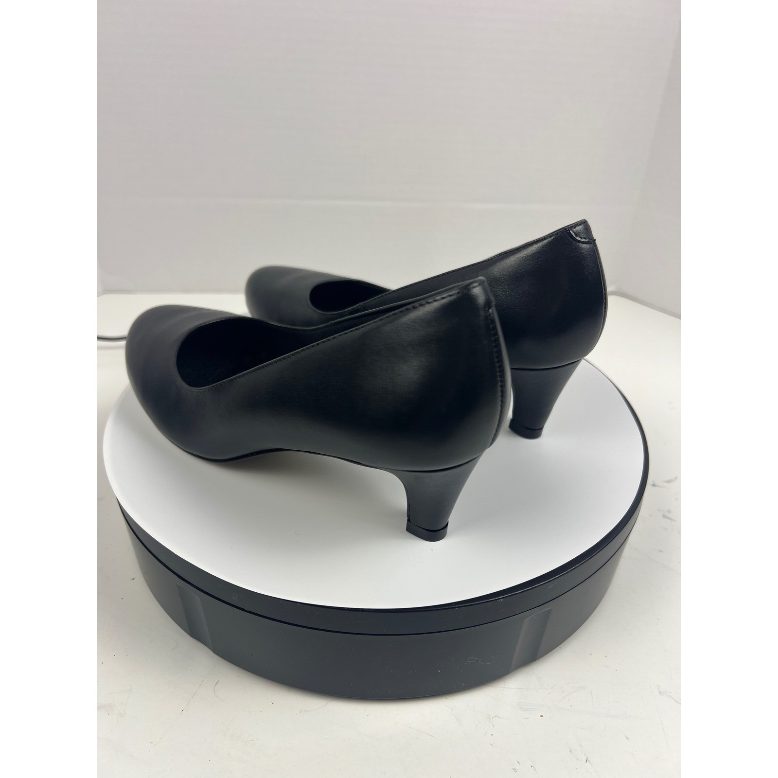 R2 Hommerson Womens Black Leather Kitten Pumps 9M Arch Support Comfort Heel