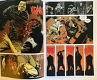 The product is a signed deluxe #100 blank cover variant of The Walking Dead comic book by Robert Kirkman and Charlie Adlard. This single issue features original sketches of characters like Rick Grimes, Negan, and Ezekiel. The variant cover was illustrated by Daniel Carver and includes a personalized sketch of Negan. Published by Image Comics, the comic falls under the genres of adventure and horror & sci-fi, and is part of the modern age era with a publication year of 2024. This key issue features the horrifying debut of Negan to the Walking Dead storyline.