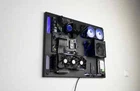 ABK Wall Computer, Computer Wall Mount, Space Case, Open Case, Full ATX, Open Air Computer Case *Plexi Cover Panel Included* Dimensions: Width: 27" (69cm) Depth: 1.18" (3cm) Height: 20.8" (53cm) Allows for a full sized ATX power supply- also still supports SFF PSUs. Supports 2x SSD. 1x HDD Compatible with 120, 140, 240, 280, 360mm liquid coolers. Supports 120mm and 140mm fans. Made of steel. Powder coated. Only suitable for Mini ITX, Micro ATX, Full ATX motherboards. 1x Vertical card holder. 1x GPU Anti-sag 9x Motherboard mounting screw. 8x SSD mounting screw. 1x On/Off Cable and Button.