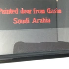 Wall Hanging Embroidered Picture Saudi Arabia Painted Door from Gasim Framed 9.5" x 8", outside measurements. Image measurements 6 3/4" x5". Very good condition, no damage. InvN/ES/5