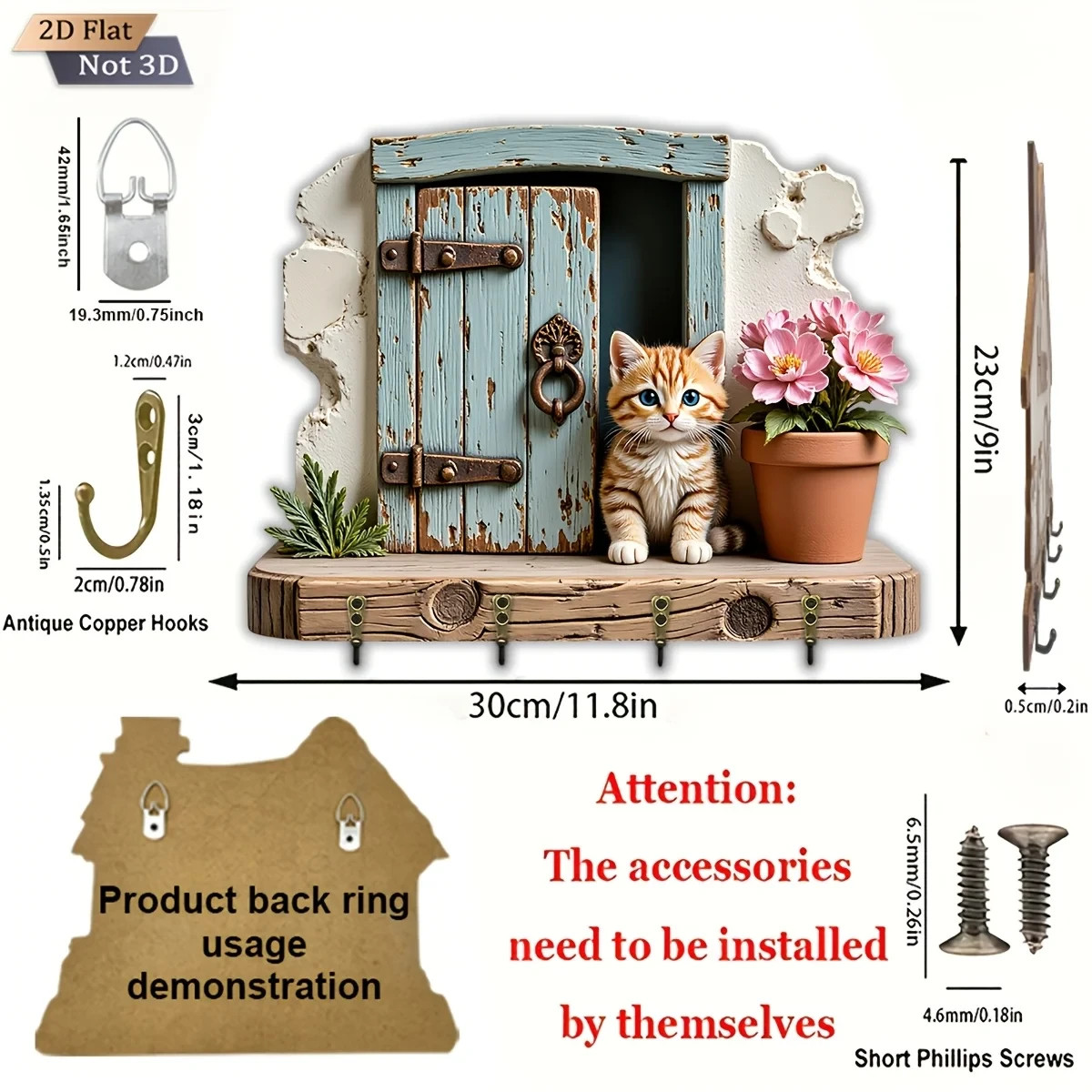 $ 15.3430cm Wall Keychain - 2D Organizer Mechanism 4 Hooks Entrance Watches