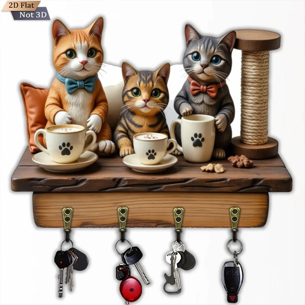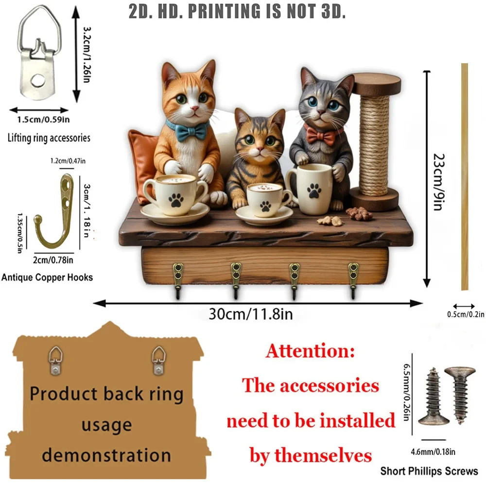 $ 15.4230cm Wall Keychain - Cat Tabby Organizer 2D 4 Hooks Entrance