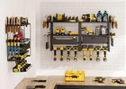 Power Tool Organizer Wall Mount Garage Wall Organizer with 2 Drawers 【Upgraded Drawer Design】Unlike other drill rack on the market, we add two drawers to store a large number of small objects, such as screws, drills, tapes, etc. There is also a lock design at the bottom of the drawer to prevent the entire drawer from falling down when pulling. 【4 Tiers High Capacity Storage】Our cordless tool rack has a total of 4 tiers, we increase the height of the third tier, so that it can store larger tools. The second tier with 2 drawers, which can store various small items. 8 electric drilling tools can be placed at the bottom. We have 2 accessories on both sides to store screwdrivers, pliers and hammers. 【Optimized Details】There are 8 installation holes on the garage tool organizer, which is equipped with complete installation screws. Ensure that the product can be installed firmly on the wall. In addition, the installation distance between the two holes is 16 inches. It can be installed on the stud perfectly. 【Easy to Install】We provide a full set of assembly accessories and manuals, and attach assembly videos. You only need to spend a few minutes to assemble the tool storage. 【Strong Load-bearing Capacity】Power tool shelf is made of thickened heavy-duty steel metal with greater load-bearing capacity and durability, it can be kept for a long period of time without deformation when storing tools. 【After-Sale Guarantee】 is committed to providing 100% customer satisfaction. If you have any questions or are unsatisfied with our product, Please don't hesitate to contact us, we will respond and provide solutions as soon as we receive your information.