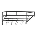 Application It can be used in the kitchen, bathroom, living room, study room, and offices for storing utensils, cookware, books, and other items within 44lbs. Specification Color: Black Material: Steel, Iron Style: Modern Process: High-temperature Baking Paint Process, Polishing Process, Welding Process Maximum Load-bearing Capacity: About 20kg/44lbs Assembly Required: Yes Installation Method: Screw-In Mounting Type: Wall Mount Number of Tiers: 1 Number of Hooks: 10 Net Weight: 2.2kg/4.85lbs Gross Weight: 2.5kg/5.5lbs Package Size: 63*6.5*32cm/24.8*2.6*12.6inch Product Size: 60*30*24cm/24*11.81*9.45inch Guardrail Height: 6.3cm/2.4inch welcome to findthings_us! Description If you are troubled by messy items or narrow space in the kitchen, this wall-mounted pot rack is your ideal choice. It not only makes the cooker accessible but also its simple&atmospheric design can match all kitchen decoration styles, creating a warm and comfortable atmosphere. At the same time, the wall-mounted design does not occupy any countertop space. It is a great addition to your kitchen and other spaces. Key Features Large Storage Capacity: With a large top shelf (24*11.81inch), two extended hanging rails, and a total of ten sturdy&detachable S-shaped hooks, it can accommodate many pots, condiments, and other kitchen supplies to meet your daily storage needs while restoring the space to a tidy state. Strong and Durable: This product is made of high-quality steel and iron with a high-temperature baking paint process, so it can resist wear, corrosion, rust, shock, and deformation, allowing it to be used for a long time. Meanwhile, it is waterproof and can be used in a wet environment. Wide Applicability: It can be installed in the kitchen as a pot rack for storing pots, pans, and utensils, or used as a bookshelf or display shelf in your study room and living room, or a plant or flower rack on the balcony. The wide applicability can meet your various storage needs. Modern Style: The pure black color, as well as the classic design, makes it look simple but stylish to be a great decorative piece that can blend in with different decor styles and add color to the home. A Great Kitchen Helper: It helps to clear up your cabinet and counter space to free up more space. The open design makes it available to access items on the shelf easily, so you do not have to dig through your kitchen for what you want. Besides, it adopts grid design to facilitate water drainage and prevent bacteria breeding. Saving Space: Mounted on the wall, it doesn't take up any floor space, which can save you a lot of space. Strong Load-bearing Capacity: With thickened steel pipes, two thickened triangular mounting bases, screw fixing, and a welding process, it has a load-bearing capacity of about 44lbs. You can store items without worrying about this product shaking or tipping over. Easy Cleaning: The black color is dirty-resistant, which can reduce the frequency of cleaning. Meanwhile, it is finely polished to have a smooth surface with a detachable design, allowing you to wipe it with a wet cloth. Convenient&Flexible Installation: This rack is simple in construction and comes with all the necessary accessories and detailed installation instructions, so you can install it with ease. Meanwhile, there are two ways to install it. You can install the triangular mounting base above or below the flat shelf according to your needs. Guaranteed Customer Service: We aim to provide quality products and services. If you have problems, please feel free to contact us. We will reply and solve the problem for you as soon as possible. Details Round Corners: This product has rounded corners to prevent accidental bumps and bruises. Raised Guardrail: The product is surrounded by raised guardrail with a height of 2.4inch, which prevents items from falling. Application It can be used in the kitchen, bathroom, living room, study room, and offices for storing utensils, cookware, books, and other items within 44lbs. Specification Color: Black Material: Steel, Iron Style: Modern Process: High-temperature Baking Paint Process, Polishing Process, Welding Process Maximum Load-bearing Capacity: About 20kg/44lbs Assembly Required: Yes Installation Method: Screw-In Mounting Type: Wall Mount Number of Tiers: 1 Number of Hooks: 10 Net Weight: 2.2kg/4.85lbs Gross Weight: 2.5kg/5.5lbs Package Size: 63*6.5*32cm/24.8*2.6*12.6inch Product Size: 60*30*24cm/24*11.81*9.45inch Guardrail Height: 6.3cm/2.4inch Installation Select a suitable mounting position on the wall and wipe the wall clean with a dry towel. Select and mark the appropriate mounting point on the wall. For best mounting results, you need to avoid mounting on wall studs. Mark the location of the screw holes corresponding to the mounting bases on the mounting point. Use a drill with a 6mm/0.2inch diameter bit to drill holes in the marked locations of the screw holes. Insert the plastic expansion tubes into the drilled holes and fix the mounting bases with screws. Place the shelf on the base and tighten the fixing screws. The installation is complete. Package Included 1* Shelf Payment Delivery details Terms of sales About us Contact us Payment We accept ebay payment 。 Fees such as import duties, taxes are not included in the item price or shipping costs. These charges are the buyer's responsibility. Delivery details Shipping: 2-9 working days to: USA Terms of sales We maintain high standards of excellence and strive for hundred percent customer satisfaction. Feedback is very important to us. We hope that you contact us immediately before you give neutral or negative feedback, so that we can address your concerns. It is impossible to address issues if we do not know about them! About us Your satis faction is our ultimate goal. We work hard to earn your trust and future business. Our certified technicians have tested each item before shipping. The unit comes with 1 year limited warranty on all manufacturing defects. a) If you