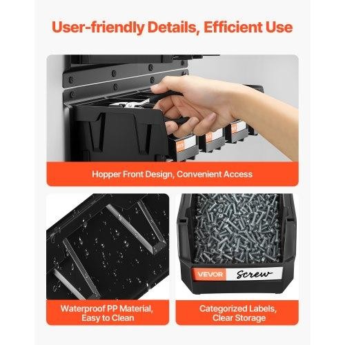 Wall Mounted Storage Bins 12 Plastic Bins 3 Metal Rails Plastic Hanging Wall Mounted Storage Bins, 12 Plastic Bins & 3 Metal Rails Plastic Hanging Stackable Storage Bin for Screws Nuts Bolts Nails Hardware Tool Organizer for Workshop Craft Room Garage Black Ridged Label Slot Slotting Design Steel Hanging Plate Open-Front Access Smooth Use Multi-Scene Versatility Lightweight and Portable Item Quantity: 12pcs External Volume: 1.18 L Internal Volume: 0.68 L Item Model Number: WM-16V1-Black Product Weight: 4.6 lbs / 2.1 kg Dimensions: 5.4 x 4.1 x 3 in / 137 x 105 x 75 mm (Single Bin) Material: PP & Cold-rolled Steel Plate *Photo Colors may vary on your device. With any product, the color may appear different based on device, monitor settings, configurations, browsers, the lighting/setting for the photograph, etc. Shades may slightly vary during manufacturing runs/processing. Photos are for informational purposes only and represent a basic design. Dimensions are approximated and may vary during manufacturing runs. Manufacturers may make modifications to the design of an item at any time. About Bargains Delivered Bargains Delivered gives personal attention that only a small business can offer. Wherever you prefer to shop, Bargains Delivered will be there with the widest selection possible for your convenience. See our feedback history with thousands of satisfied customers. We have been serving you since 2005, and we are committed to maintaining your trust! Returns/Refunds Our return policies are simple: most brand new items may be returned up to 30 days from receipt. See specific listing return policy to confirm if that item is marked returnable. Some items such as health and beauty are not returnable. For returnable items, customer covers shipping (initial and return) and no restocking fee applies if item is brand new. Brand new includes all packaging, tags, etc in perfect condition. Items which are not brand new may be subject to a 50% restocking fee or not accepted at all. All returns require a Return Merchandise Authorization number (RMA #).Please contact us for return RMA and return address. Please note that RMA # does not guarantee final disposition for a return and all returns are inspected before any credit would be given. Customer should use a trackable, insured return service. If item is damaged or lost in transit to us, customer would need to file a claim with their return carrier and we would not be able to process the return. Shipping fees are non-refundable, including expedited shipping, even if item is defective or arrives later than estimated. For any return requests involving variations in the color, shade, approximate dimensions, included accessories, or features listed in the description, normal return policies apply. If parts are missing or damaged, we will send replacement parts if available or it may be processed as a standard return. Shipping We ship fast, usually in 1-2 business days, with delivery expected 2-5 days later. Messages will be sent automatically with shipping updates. All items ship to the address provided in checkout. Please submit an order cancellation request if you need the item shipped to a different address. We may require Signature on any orders. Refusal of delivery, invalid address, unable to sign and receive, and any other reason beyond our cause of error will be treated as standard return, with all shipping and restocking fees deducted. Please inspect your package and merchandise as soon as possible to report any shipping damage or other concerns. Please save all packaging and materials until you are sure there is no damage and you will not be returning the item. If you need to return, we don't provide replacement packaging. For shipping damage, we can usually replace any specific part that is damaged. Let us know which parts need replacement. We do not provide any credits for work done to correct shipping damage (such as at local bike shops) or for the inconvenience of parts arriving damaged. We will work with you to correct any problems. Payment/Tax Sales Tax: Tax is charged for orders shipped to all states where such taxes are applicable. The amount of tax charged is based on current state and local tax rates. We collect Sales Tax for multiple states, and marketplaces also collect sales tax for some states. If your state requires the payment of use tax on out-of-state purchases, then that is fully the responsibility of the buyer. State and local tax rates are subject to change at any time By making a purchase from us, buyer agrees to above policies. Thank you!