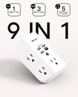 9 IN 1 FUNCTION USB WALL OUTLET:You get 5 AC outlet extender,3 USB charger ports,1 Type C charger port. Using the screw at the middle to secure it onto the wall for a duplex outlet, you won't risk unplugging the entire unit when you unplug just one cord. UNIQUE AND USEFUL DESIGN OF SURGE PROTECTOR: 3-side design, so that you can use it for the oversized and odd-shaped plugs that tend to cover up other outlets. 5 AC outlets with 2.1 inches long space in between, larger than the standard 1.5-inch socket. 4 standard distance USB ports (Total 3.1A) Larger spacing makes it easier to use for all kinds of equipment without blocking each other. 1800 J SURGE PROTECTOR TO PROTECT YOUR EXPENSIVE DEVICES: The power strip has an 1800 Joule energy rating providing a reliable power strip to protect printers, broadband modems, home theater systems, and so on. It secures your electronic devices from overload, short circuits, power spikes, lightning strikes, or fluctuation. SAFETY AND CERTIFICATE: ETL safety certified. Intelligent circuitry with built-in power sensing detects the external load which will protect against over-voltage, over-current, overload, short-circuiting. Made of the highest fire resistance level PC material(PC UL94-V0), making the USB outlet strip fireproof temperature up to 1382℉(750°C). COMPACT STURDY AND DURABLE: Tightening the middle screw into the outlet to keep USB Wall Charger from getting loose. The built-in all-in-one copper sheet can be used many times without loosening, the outlet splitter's use time is extended.