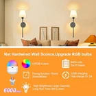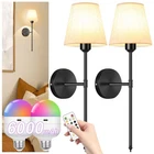 【Battery Operated Wall Sconces】 Wall sconces set of two battery operated comes with two 300 lumen, 6000 mAh E26 rechargeable bulbs. Wall sconce bulb Use Android USB charging cable to charge(Including charging cable), 6000mAh battery for lighting time reaches 25-70 hours (No wiring install) 【RGB Wall Scones】Our Battery powered wall scones let you customize your lighting like a painter with their palette. Each wall sconce offers 7 RGB colors and dynamic modes, as well as 3 color temperatures to choose from,you can choose your favorite colors for different occasions and moods. Rechargeable, includes USB charging cable (Type-C) 【Wireless Remote Control and Battery Run】Battery-operated Wall sconce remote control dimmable brightness (10%-100) and color temperature (2700K-6500K) 【Easy to Install】Wireless Wall Sconce, Indoor battery operated wall lights require no wiring and electrician, includes all mounting hardware for quick and easy installation of battery wall sconce, Battery wall light fixture with bulb and remote control included. These sconces are invaluable for power outages 【Wide Applications】Modern style and simple design of the battery operated wall light fixtures create a comfortable and warm atmosphere, these wireless wall lights perfect for bedroom reading lights and seamlessly fit into your living room, office, vanity, or even dark areas like hallways, closets, and corridors