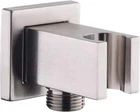 Wall Supply Elbow with Hand Shower Holder, Keymark Brass Square 1/2″Shower Hose Connector, Wall Mount Drop Ell Union Water Outlet, Brushed Nickel Description Item Package Quantity 1 Batteries Required? No Finish Brushed Mounting Type Wall Mount Unit Count 1.0 Count Color Brushed Nickel Brand Keymark Material Brass Item Weight 10.8 ounces Finish Type Brushed Package Dimensions 4.02 x 2.83 x 2.8 inches Manufacturer Keymark UNIVERSAL STANDARD – Wall elbow features G 1/2" male threads for pipe connection and shower hose connection, fits most hand held shower head 3 in 1 FUNCTION – Combines with Supply Elbow, Handshower Bracket and Flange, reduces the number of components needed in the shower space, allowing for a cleaner look BRASS CONSTRUCTION – Shower Elbow is constructed from brass, ensures long-lasting durability EASY INSTALLATION - Wall-mounted design using slip-fit connection, enables hassle-free installation. Brushed Nickel finishes will resist corrosion and tarnishing through everyday use SIMPLE AND STYLISH DESIGN – This wall mount wall union features a modern square design, adds a stylish touch to transitional decor Product Description Renovate Your Bathroom with Keymark Wall Union Keymark Wall Supply Elbow is a hand-held shower wall supply which allows the hand-held to be mounted close to the shower wall. Complete your performance showering system with the wall-mount handshower holder and supply elbow. Coordinate it with handshowers, faucets, and other accessories to express your own personal style. Package Includes: 1 X Wall Elbow with Shower Head Holder 3 in 1 – Wall Elbow & Hand Shower Holder & Flange Supply Elbow: for use with a hand shower and hose (sold separately) Integrated hand shower bracket: holds your hand shower in position, fits most hand showers Wall Flange: to hide the pipe installation hole, decorate the wall Easy to Install Slip-fit connection easily installs without using tools 3 in 1 G1/2-inch connection Solid brass construction Easy installation without tools Long-lasting and easy to maintain G 1/2 Connection G 1/2 in. male threads connects to the drain pipe. G 1/2 in. male threads connects to the shower hose. This wall elbow fits most hand showers. Brass Construction The supply ell features solid brass construction for beauty, durability and reliability. Flange The flange is used to hide the installation hole on the wall and make the wall look perfect. Finish in Brushed Nickel Brushed nickel is extremely long-lasting and tends to keep its finish longer than chrome. It doesn't show fingerprints or water spots and is easy to clean. It matches nicely with most other accessories and fixtures. Add New Shine to The Renovated Bathroom By combining superior technology with a choice of breath-taking designs, Keymark wall union can provide you with all the elements to enhance your bathing space.