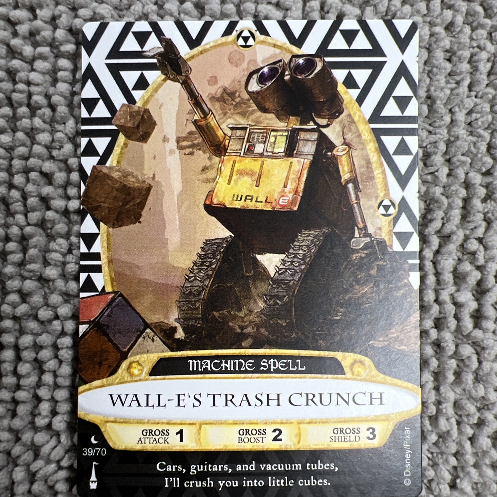 This Sorcerers Of The Magic Kingdom card features WALL-E's Trash Crunch, a retired game from the Disney Magic Kingdom set. The card is made of high-quality card stock and has a regular finish. It is a standard-sized card and has not been autographed. The card number is 39, and it is a Disney card manufactured by Disney in the United States. The card is suitable for players aged 4 and above, and the language is in English. The set is called Sorcerers Of The Magic Kingdom, and the character featured is WALL-E. This card is perfect for collectors of collectible card games and Disney enthusiasts.