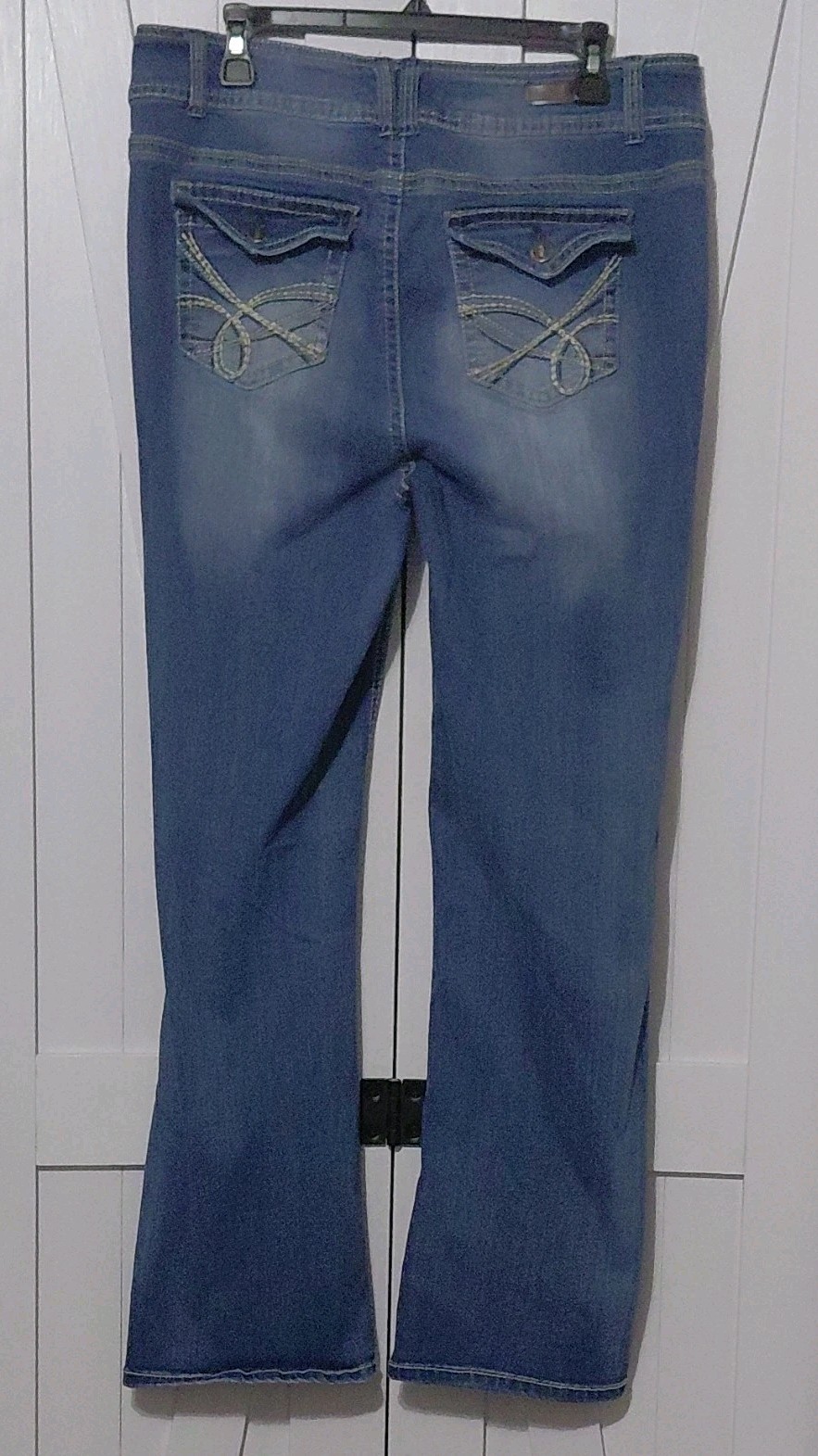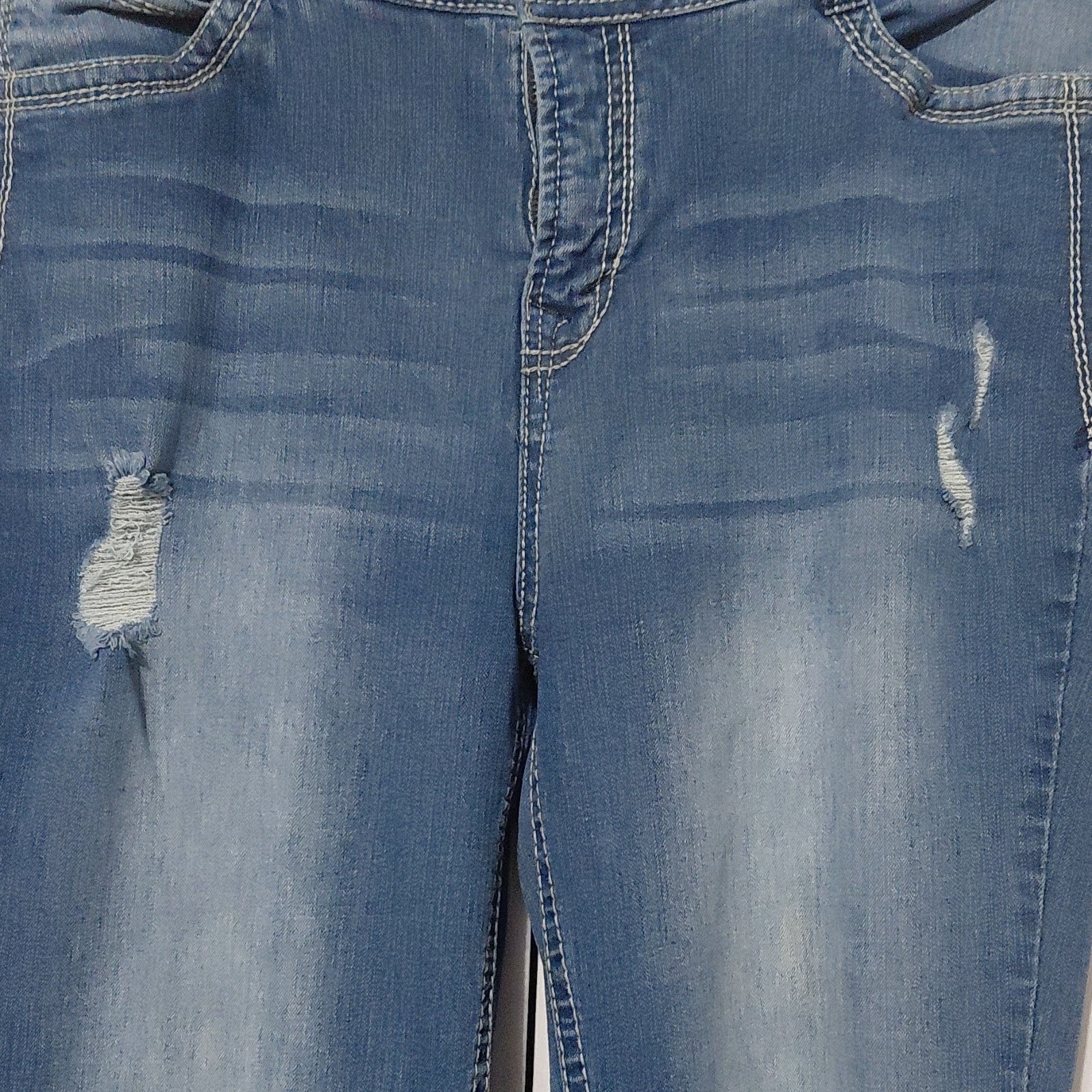 WallFlower Blue Denim Jeans Bootcut Medium Wash Distressed Stretch 5-Pocket