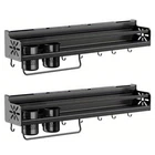 Description: MULTIPURPOSE STORAGE: This spice rack wall mounted consists of a spice rack, hooks, knife rack, towel bar, and spoon/fork holder, all in one piece, to fully satisfy your need for a tidy kitchen. The spice rack hanging can store spice bottles, spices, cutlery, lids, towels, plates, pans and kitchen gadgets. The spice shelf has hooks underneath, hanging spice rack organizer perfect for hanging pans, coffee cups, rags, brushes and more. EASY TO INSTALL & SPACE SA VING: Hanging pot rack comes with all necessary hardware including screws and anchors to make installation a breeze. The wall-mounted organizer helps to keep your kitchen counters tidy and can easily free up more space for you to keep your house and kitchen free of clutter.kitchen shelves wall mounted is 40cm long, space saving spice racks fits all accessories. DURABLE CONSTRUCTION: The wall mounted spice rack is made of sturdy black metal that prevents rust and has a stable structure, the spice rack organizer wall mount is durable and can withstand daily use. The spice shelf wall mount is easy to clean and resistant to oil and grease, pot organizer is simply clean with a damp cloth. STYLISH & ELEGANT & MULTI-TIER C ONSTRUCTION: The kitchen organizer adds a touch of elegance to your kitchen décor while providing functional storage space. Organizers make it easy to find and use kitchen utensils, making cooking more efficient and enjoyable. The kitchen utensils rack has different levels of hooks and shelves to maximize storage space and give you easy access to cooking essentials. VERSATILE USE: The kitchen storage organizer is not only a highly functional product, but also an elegant decorative piece for the home. The pots and pan organizer can be used in any kitchen, whether it is a small apartment or a large family home. This versatile storage rack can also be used in bathrooms, pantries, balconies, living rooms, doors and cabinets. Specification: Product name: Multifunctional storage rack Material: Space aluminum Features: Strong anti-rust function Surface technology: Plain black Color: Black Size: 50x12x10.5 cm/19.69x4.72x4.13 inch Application scope: Kitchen Installation method: Punch-free/punch installation Package: 1-6x Spice Rack 1-6x Installation Tools