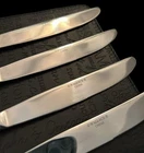 The Wallace Countess Dinner Knife Set includes 4 pieces of glossy stainless steel dinner knives, each measuring 9 1/2 inches in length. The set is dishwasher safe and features an antique style with a Countess handle pattern. Ideal for all occasions, this flatware set is part of the Countess collection by Wallace and is made of durable 18/10 stainless steel.