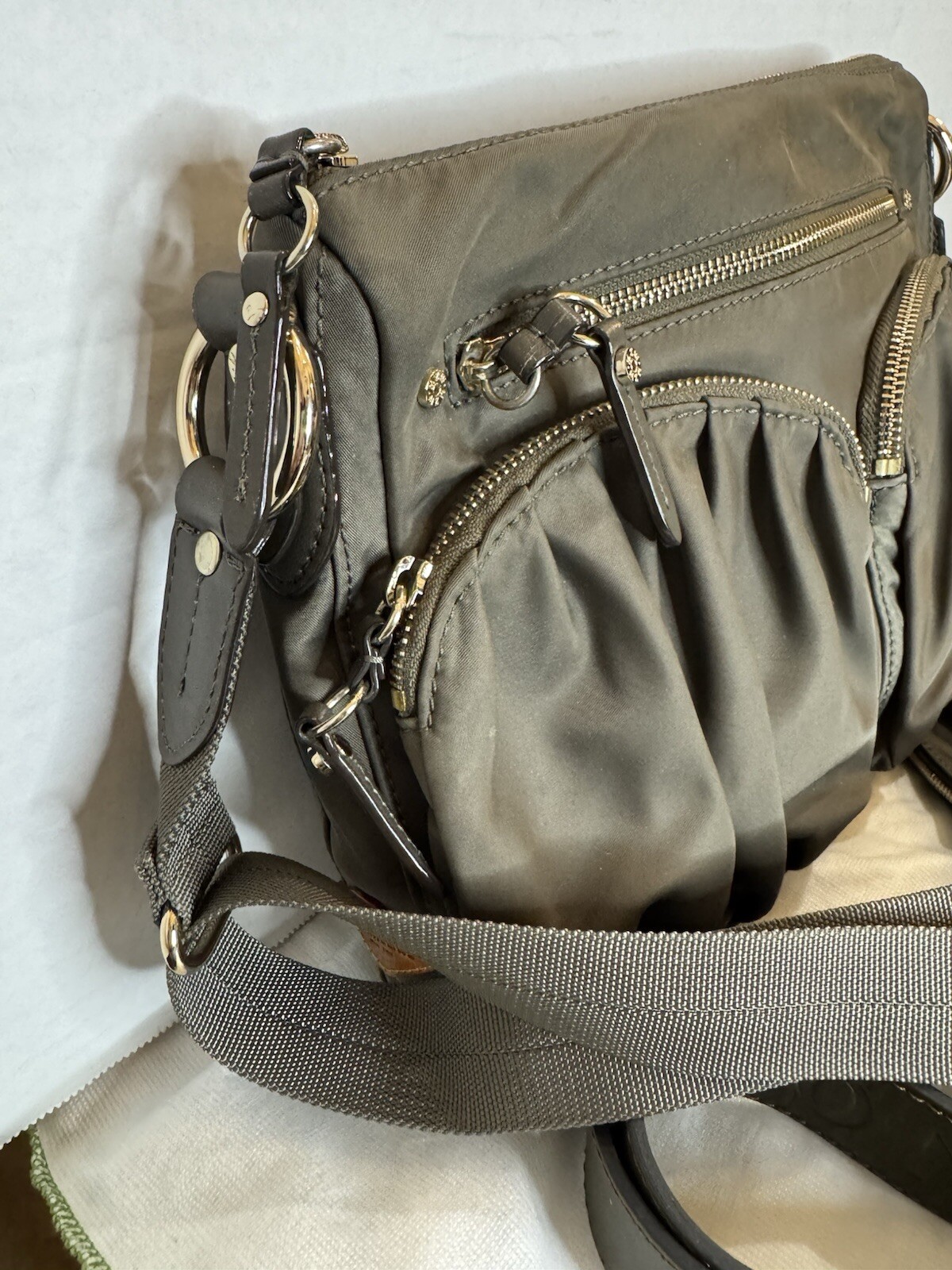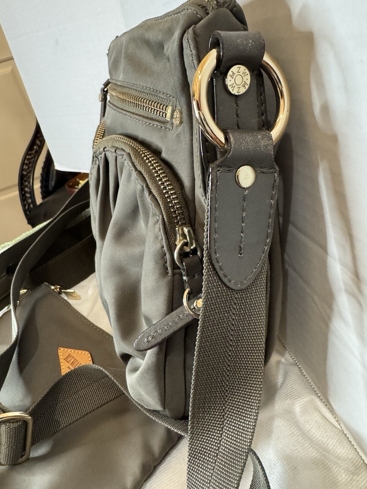 MZ Wallace Crossbody Bag Gray Nylon Purse with Adjustable Shoulder Strap & Pouch eBay Listing Description Upgrade your handbag collection with this MZ Wallace Crossbody Shoulder Bag, a sleek and versatile purse perfect for daily use. This bag is crafted from durable gray nylon with gold-tone hardware, offering both function and fashion. Features & Details: • Brand: MZ Wallace • Color: Gray • Material: Lightweight, water-resistant nylon with leather trim • Size: Approx. 12” (W) x 9” (H) x 3.5” (D) • Straps: • Two shoulder straps for versatile wear • Adjustable crossbody strap for a custom fit • High-quality construction ensures durability and comfort • Compartments: Multiple zippered pockets for organization • Bonus: Includes a matching pouch for additional storage • Interior: Spacious with pockets and an attached key leash • Condition: Very good pre-owned condition Shipping & Policies • Fast Shipping! I try to ship within 24 hours (excluding weekends/holidays) • Combined Shipping: Buy two or more items, and I’m happy to combine shipping costs! • Follow my shop, Vintage Wowzers, for more handpicked vintage and designer treasures added daily! ✨ Thanks for shopping with Vintage Wowzers! XOXO ✨ FEBJOD20