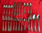 * missing one soup spoon Elevate your dining experience with the Wallace Summerset Frost 18/10 Stainless Steel Flatware Set. Crafted from premium stainless steel, this 24-piece set includes forks, knives, spoons, and a serving set, all designed with a sleek silver finish that complements any table setting. The durable handle material ensures a comfortable and secure grip, perfect for everyday use or special occasions.