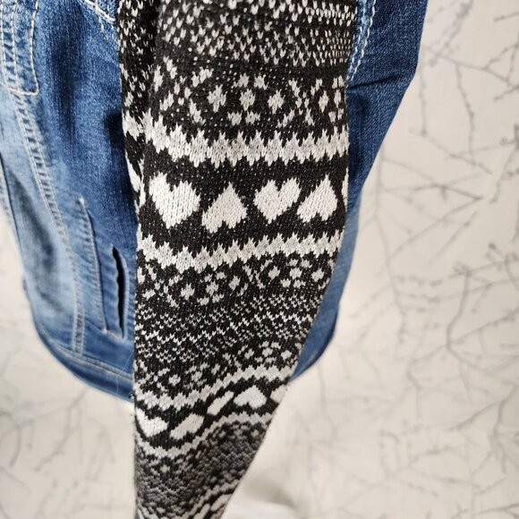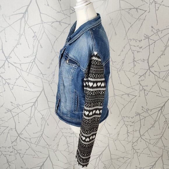 Wallflower Button Front Denim Jacket w/ Contrast Knit Sleeves style tags: bohemian, festival, western, boxy fit Women's XL Chest: 23" Length: 21" Good used condition: no rips, marks or stains.