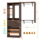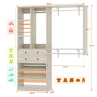 Product Description Versatile Functionality The 5FT closet system features 4 heavy-duty shelves, 3 hanging rods, 2 sliding drawers, and 3 shoe storage shelves offering versatility in organizing clothes, shoes, and accessories, catering to your family's needs. This closet organizer system will transform your normal blah closet into a very organized closet space with storage. The reversible design of heavy shelvings makes your closet organizer system more flexible. If you're seeking an easy-to-assemble and versatile closet system, the Besiost 5FT closet system is a solid choice. It will be a valuable addition to your home organization. Considerate Details Two Storage Drawers - The drawers are easy to open with smooth sliders. You can store pants, scarves, etc. Adjustable Storage Shelves -Two shoe storage shelves can be placed at adjustable heights with the metal shoe stops at the ends. You can also place these shelves horizontally to store your daily necessities in storage baskets for organizing. Adjustable Hanging Rods - 3 Hanging Rods are easy to install. If you need to adjust the length, just rotate the joints of the metal rods then you can adjust it as you need. Reversible Shelvings - The reversible design of heavy shelvings makes your closet organizer system more flexible. Add it to your walk-in closet for a stunning look About Installation Single-sided Wall-mount - It is a single-sided wall-mount closet organizer and storage system, so there is no need to attach it between two walls. Just attach its backside to the wall with strong anti-fall accessories so it will be sturdy when holding many more things. Straightforward Instructions - The included instructions provided clear and concise guidance, making the task relatively easy to accomplish. The components were well-packaged, and all the necessary hardware was included. DIY and Cut - If the width of this closet organizer system does not fit your space, the shelving boards can be cut to fit. But please do it carefully and make the cutting surface flush to fit the side board.