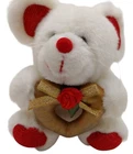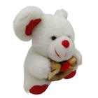 Walmart White red Plush Mouse Holding Gold Heart 6" Valentines.