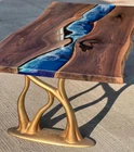 love the table, a true work of art. Price to quality relationship very high. There are a lot of wanna bes out there, but few true craftsmen in this space, and they are craftsmen. Lots of back and forth to get what we desired.. nonlinear edges, curvy river, branch circles within wood, blue resin covering only 20% of table overall, specific length and width, leg style. Shipped via air very quickly too. Two thumbs up!