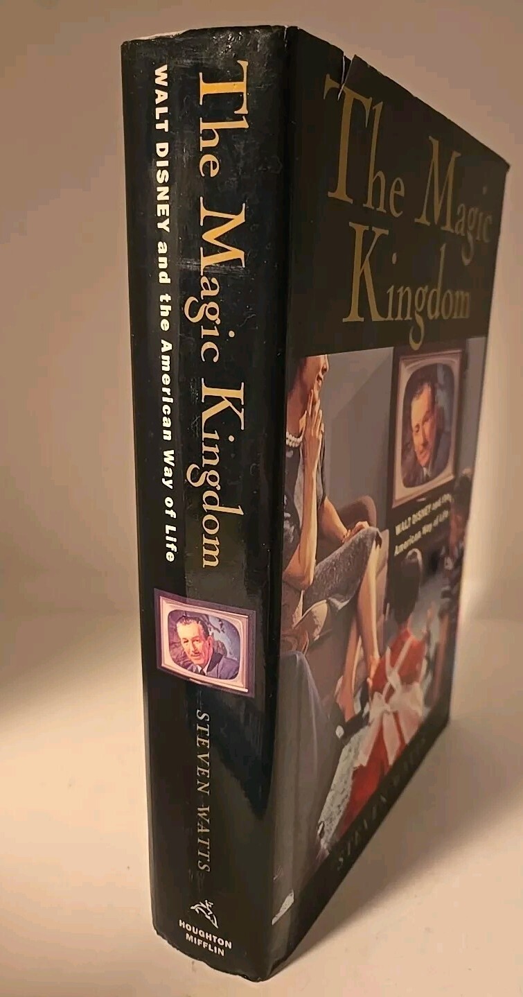 The product is a hardcover book titled "The Magic Kingdom: Walt Disney and the American Way of Life" by Steven Watts. Published by Houghton Mifflin Harcourt Publishing Company in 1998, it is a biography and performing arts book about Walt Disney. The book is 9.8 inches in length, 6.7 inches in width, weighs 33.7 ounces, and has 608 pages. It is written in English and focuses on film genres and animated topics.