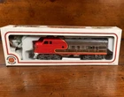 The Walthers Trainline Deluxe HO Model Train Set is a vintage 1998 train set featuring a Santa Fe Southern Railway replica box car. This pre-built set includes a powerful diesel locomotive, 5 train cars, Bachmann EZ Track rail system, MRC Power Pack, and working headlights. Perfect for collectors and model train enthusiasts, this electric train set also includes a Railpower 1300 Powerpack for control. Weighing 6 lb, this HO scale train set is a great addition to any model railroad layout. A few boxes are torn, but are in working condition