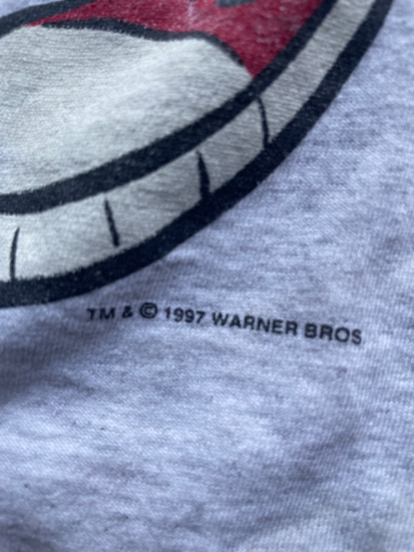 This vintage Taz tee is a must-have for Looney Tunes fans! The retro basketball graphic still pops on the heather grey fabric, giving off serious nostalgic vibes. Though pre-loved with some collar wear, it’s got that cool, broken-in feel. Just message for sizing—it’s a unique find for any collector or casual wearer. Offers welcome, so grab it before it’s gone!