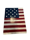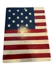 This is a Warren Kimble Brandon House American Flag Trivet made by Sakura. It features a red, white, and blue color scheme with a Colonial style. The trivet is designed to be used as both a wall hanging and a cheese board, made from stoneware in a contemporary original design from the Colony product line. It is decorated with an American theme, making it a patriotic and decorative piece for your home.