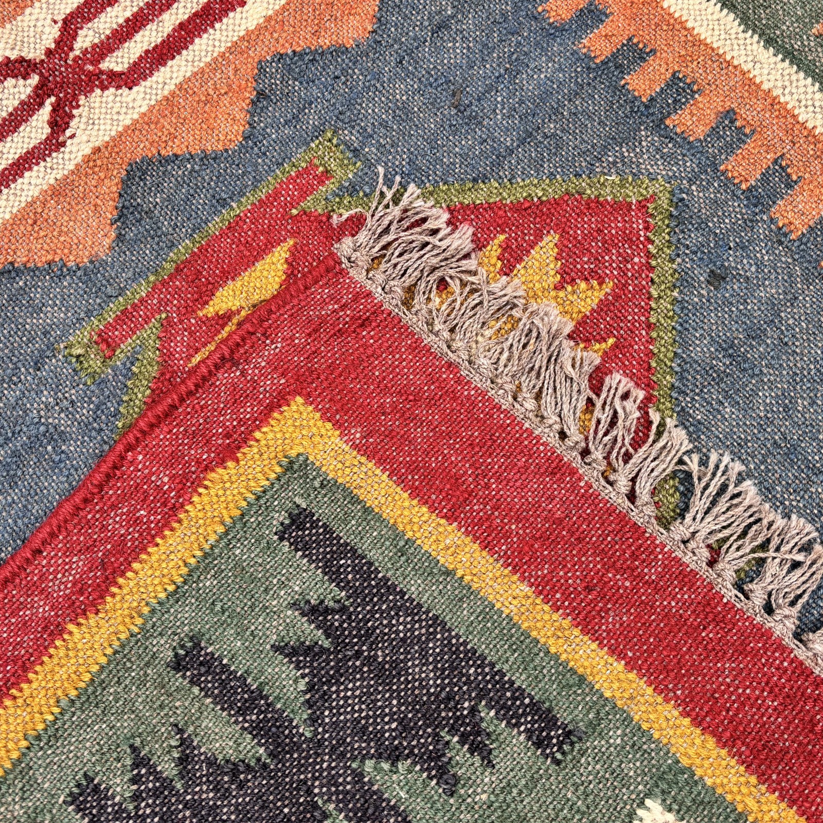 Add warmth and elegance to your space with this handmade wool and jute rug, crafted using age-old traditional weaving techniques. Every piece is created on a loom by skilled artisans, ensuring exceptional quality and attention to detail. ✔️ Premium Wool & Jute Blend – Made with strong natural wool and jute fibers for exceptional durability, rustic charm, and long-lasting beauty. ✔️ Reversible Design – Both sides feature the exact same pattern, giving you double the use and value. ✔️ Natural Dyes – Colors are rich, eco-friendly, and completely washable. No color bleeding or fading during washes. ✔️ Flat Weave & Fine Craftsmanship – Lightweight yet tightly woven, perfect for both modern and traditional décor. ✔️ Custom Orders Welcome – We can create this rug in any size or color as per your requirements. 📌 Note: If you prefer your rug without tassels or fringes, simply inform us. We will customize it for you. This rug is more than just a floor covering—it’s a handcrafted masterpiece designed to beautify your home. Perfect for living rooms, bedrooms, or any space that needs a touch of artisanal charm.