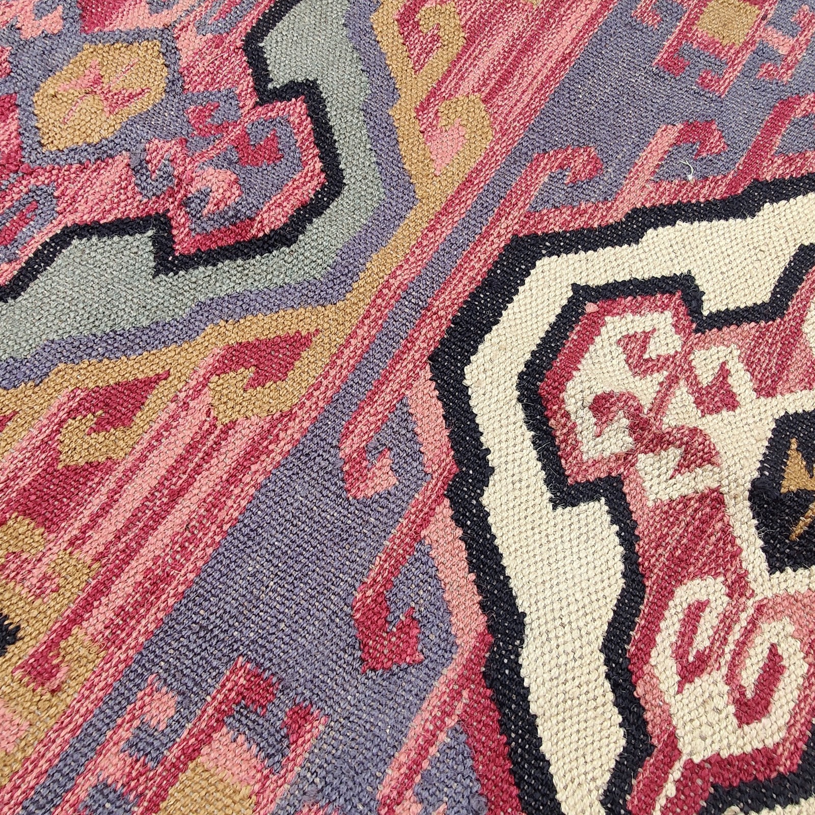 The rug is beautiful and true to the description and colors seen online. The original arrival was estimated at nearly 4 weeks; It arrived earlier which was great, but still wish it was faster. Otherwise, definitely worth it. Beautiful craftsmanship and unique design you can't find everywhere.