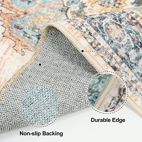 5x7 Area Rug Living Room Rugs - Washable Neutral Modern Abstract Soft Thin