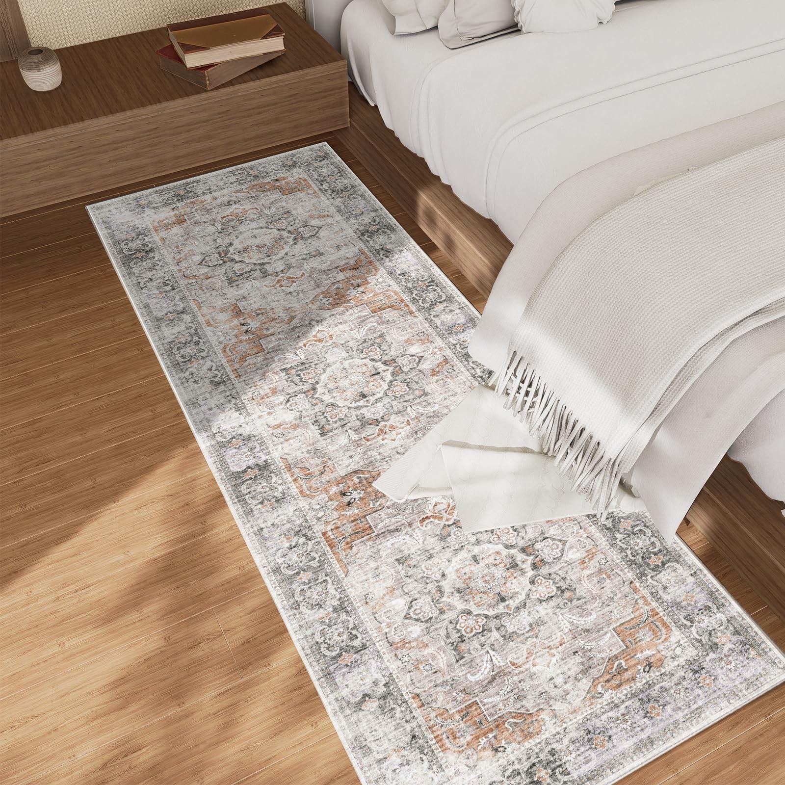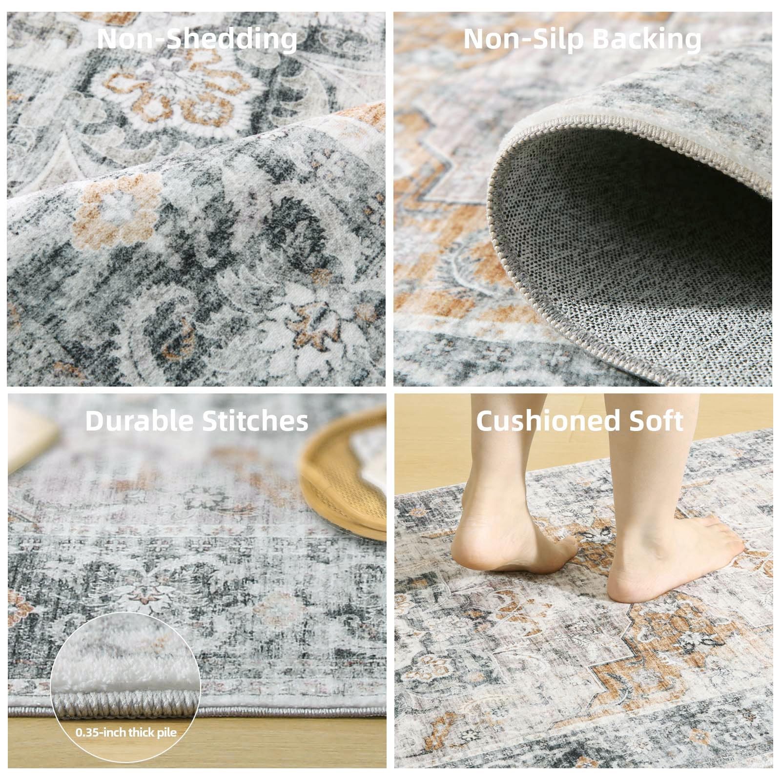 Enjoy the charming vintage look and feel of your rug in your home without the stress of traditional washing! Tipes 1. Foided Packed Rugs maycontain temporary creases uponarrival lay it flat on the floorand walk around. the creaseswill fade within a few days. 2 Due to light and displayreasons carpet color may varysighdly. 3.The size of the area rug ma)have an error of +0.|6ft (5cm)due to manual measurement WASHABLE RUNNER RUG: This is a fully machine washable runner rug for extra convenience. machine wash this kitchen runner rug in cold water alone for a deeper clean. regular vacuuming and spot cleaning will keep the runner rug looking fresh while the colors stay vibrant and won't fade, perfect for busy households with kids and pets STAIN-RESISTANT RUG: This runner rug uses stain-resistant technology to protect the floor underneath, so you never have to worry about accidental spills again. as long as it does not contain any pigments, the liquid will stay on the surface of the runner rug without penetrating into the fabric, You can simply wipe it off ULTRA-SOFT LOW PILE RUG: Soft faux wool thick runner rug, you can walk on it barefoot and enjoy the soft and luxurious touch. it can effectively reduce the floor noise don't have to worry about your children running around. runner rug is very suitable for family life such as kitchens, bedrooms, living rooms, provides great comfort for your bare feet NON-SLIP & NON-SHEDDING RUNNER RUG: The living room rug is made of upgraded tpe rubber backing, never worry about slipping or tripping on the runner rug, you don’t need to pay for an extra rug pad, the runner rug stays in place even with heavy foot traffic AESTHETIC RUG: Our bohemian style runner rugs are a perfect blend of distressed and vintage pattern designs to breathe life into your space and perfectly enhance the beauty of any room in your home. perfect as a home decor rug for entryways, hallways, kitchens, bedrooms, kids rooms, home offices
